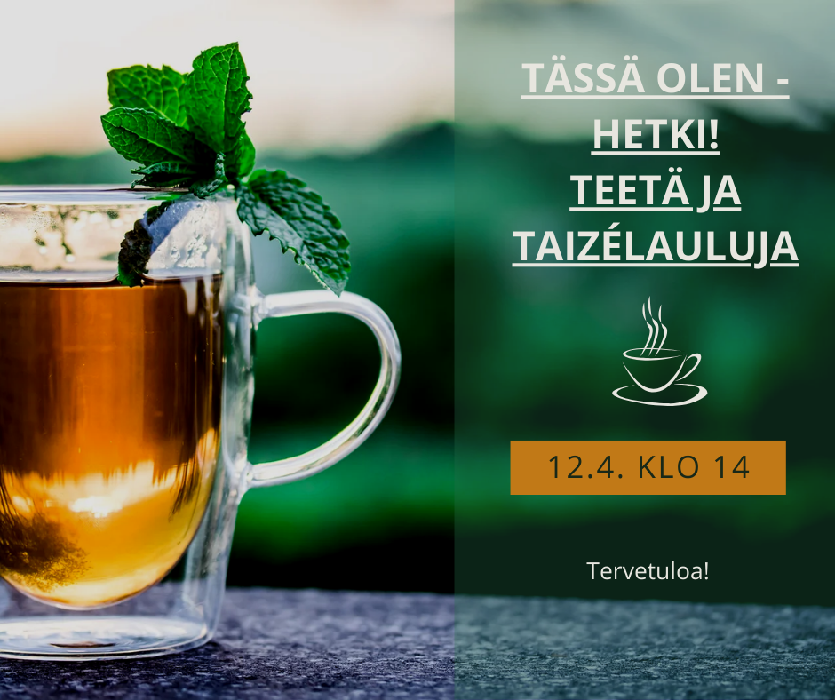 Teetä ja Taizé -lauluja, tässä olen -hetki, kokoontuu aina kuukauden toisena sunnuntaina klo 14.